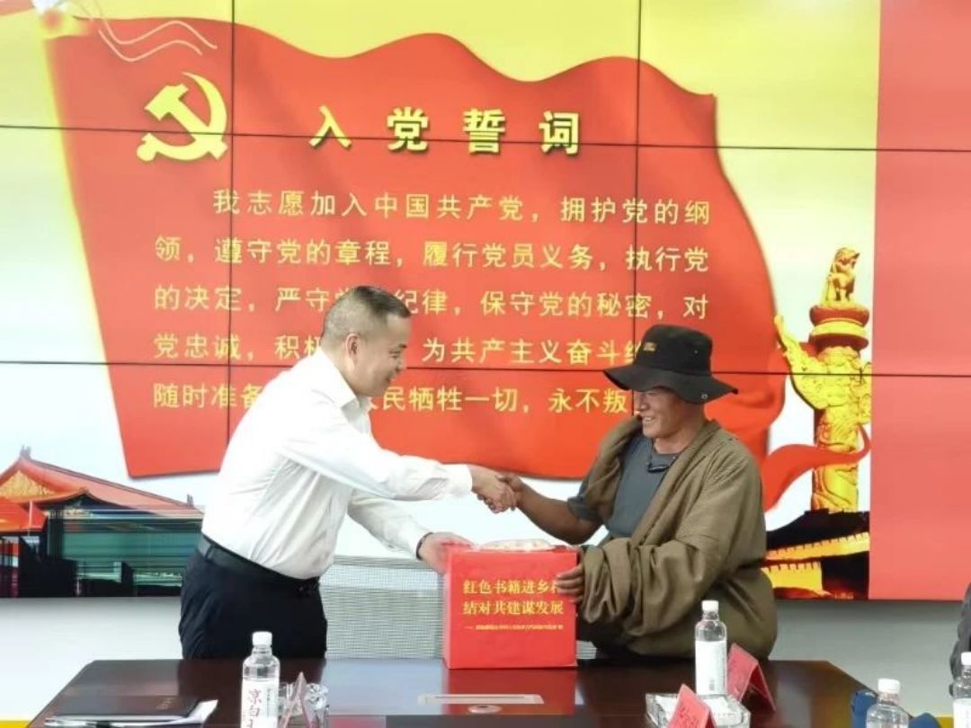 南渝绵南公司党委精选55本思政红色书籍,捐赠给求吉玛村党支部,丰富求吉玛村图书室书籍,方便该党支部党员利用图书室开展学习教育活动,为该村党员干部和村民在闲暇之余学习党史知识、增强文化自信、传承红色基因提供了丰富的精神食粮,从思想上帮扶求吉玛村党员干部感思践悟、实干作为。