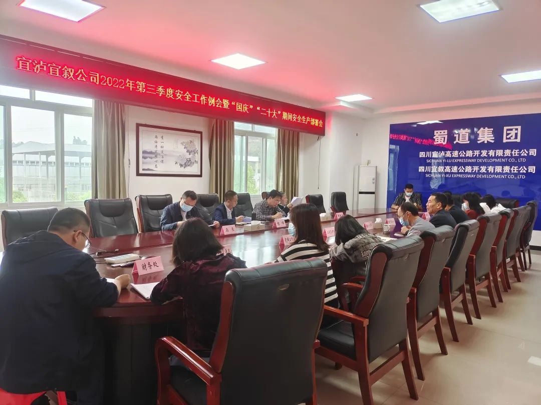 9月26日,宜泸宜叙公司召开2022年第三季度安全工作例会暨“国庆”“二十大”期间安全生产部署会,会议传达学习了习近平总书记关于安全生产系列讲话和李克强近期对森林草原防灭火工作作出重要批示,总结了公司三季度安全环保工作开展情况,安排部署了下阶段重点工作。