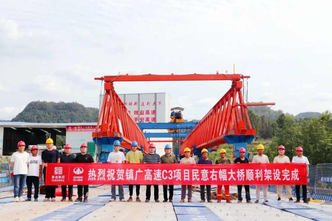 近日,镇广高速C3项目控制性工程民意大桥右幅T梁架设全部完成,标志着民意大桥顺利实现半幅贯通,为桥梁主体工程建设目标如期达成奠定坚实基础。