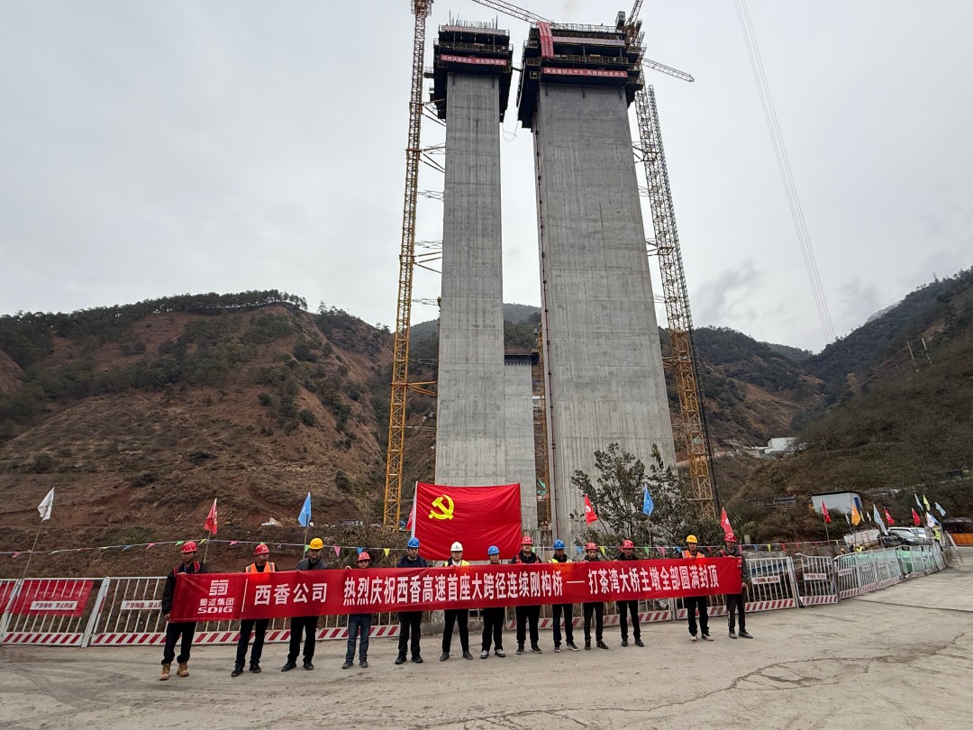 12月25日,西香高速TJ4-3标控制性工程——打茶湾大桥主墩顺利封顶,标志着西香高速全线首座特殊结构桥梁下部结构全部完成,正式转入上部结构施工阶段,为项目全线贯通奠定关键基础。