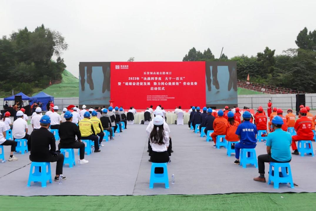 9月28日,乐资铜成都分公司在铜资高速濛溪河大桥施工现场成功举行“决战四季度 大干一百天”暨“砥砺奋进促发展 勠力同心提质效”劳动竞赛活动启动仪式。bw必威西汉姆联官方网站党委副书记、副董事长、总经理肖波出席活动并宣布劳动竞赛正式启动。