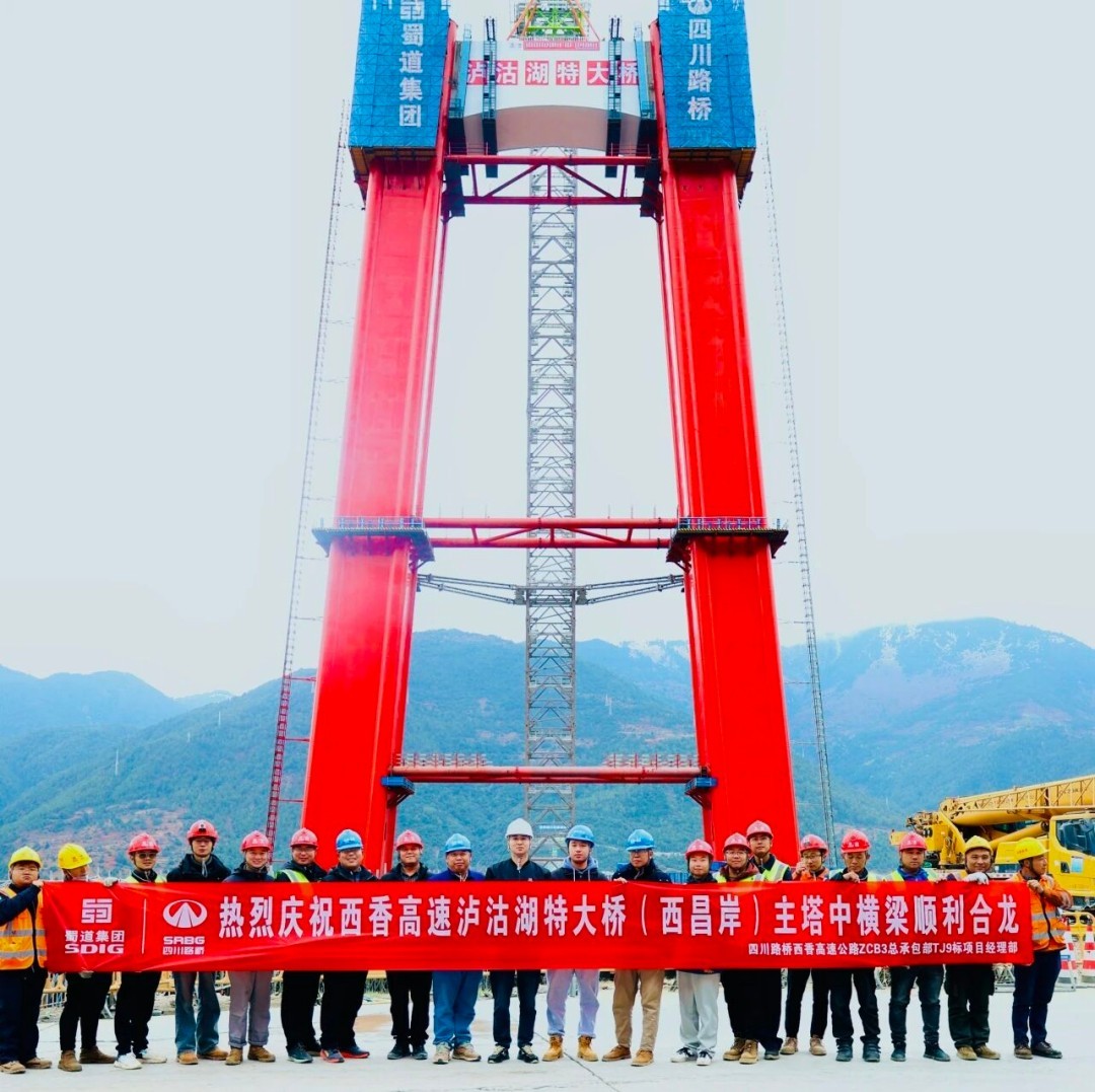 11月25日,195吨钢横梁在120米高空精准“滑”入泸沽湖特大桥(西昌岸)主塔预留槽口,这座被誉为“世界第一山区悬索桥”的西香高速泸沽湖特大桥(西昌岸)主塔中横梁顺利完成毫米级高精度合龙。这一关键节点的突破,标志着大桥建设进入了新阶段。