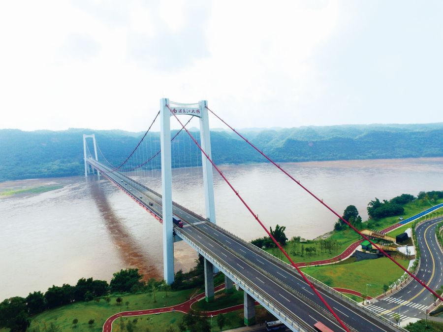 宜泸高速南溪长江大桥位于四川省宜宾市南溪区,北端连接罗龙镇,南端连接江南镇,是宜泸高速公路工程建设中最具影响力的特大型桥梁