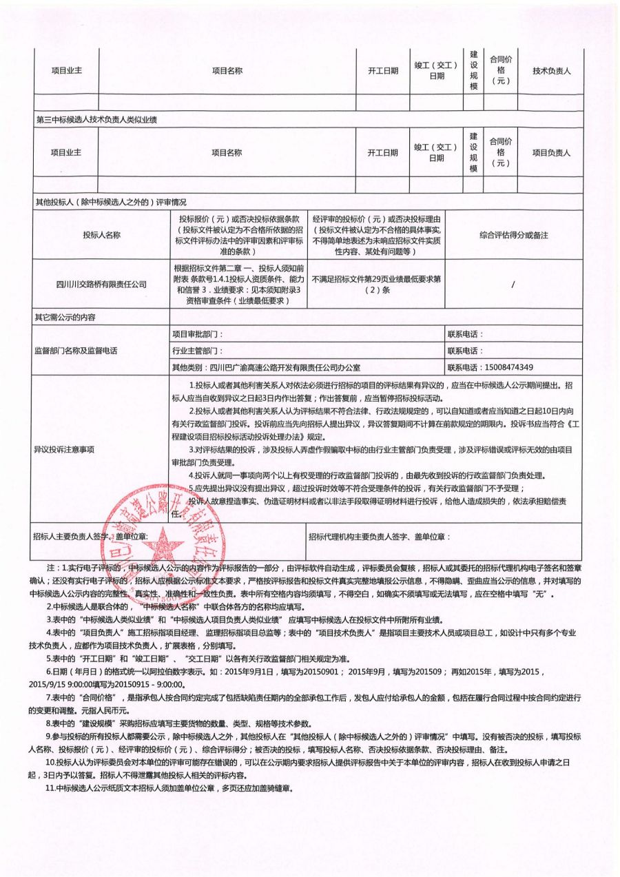 隧道底板采空区钻探劳务协作项目中标候选人公示