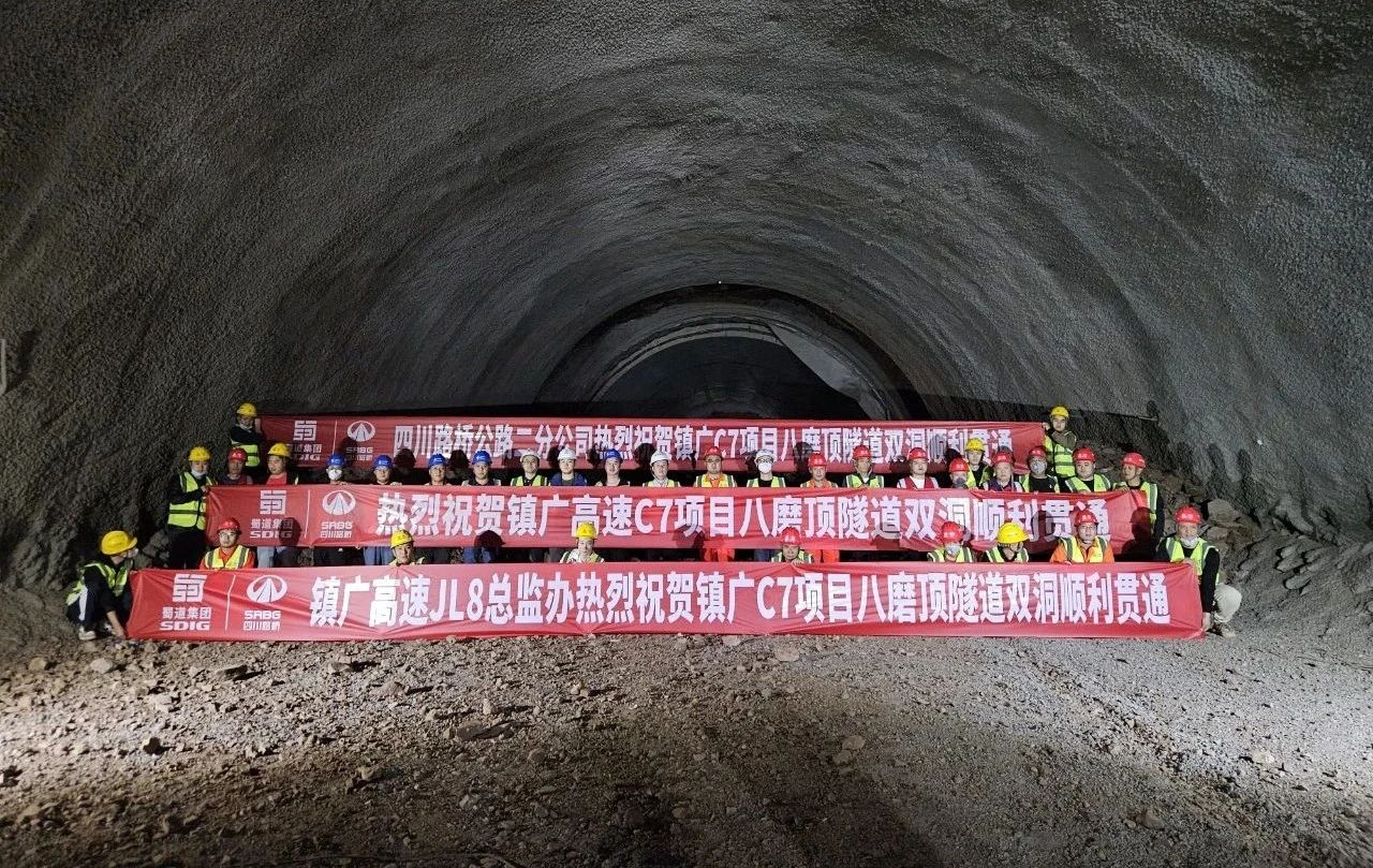10月14日,镇广高速C7项目八磨顶隧道双洞顺利贯通,为镇广高速全线通车奠定坚实基础。