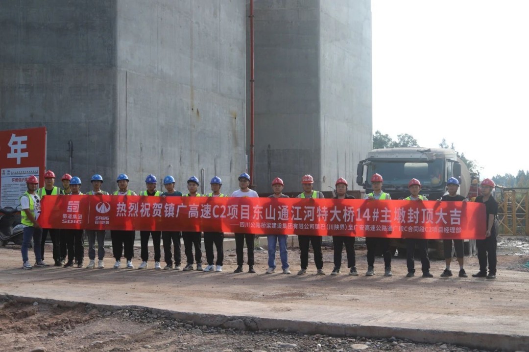 12月1日,镇广高速最高墩柱——通广段C2项目东山通江河大桥14#主墩完成封顶,为下一步上部结构施工打下坚实基础,标志着镇广高速C2项目工程建设进入冲刺阶段。
