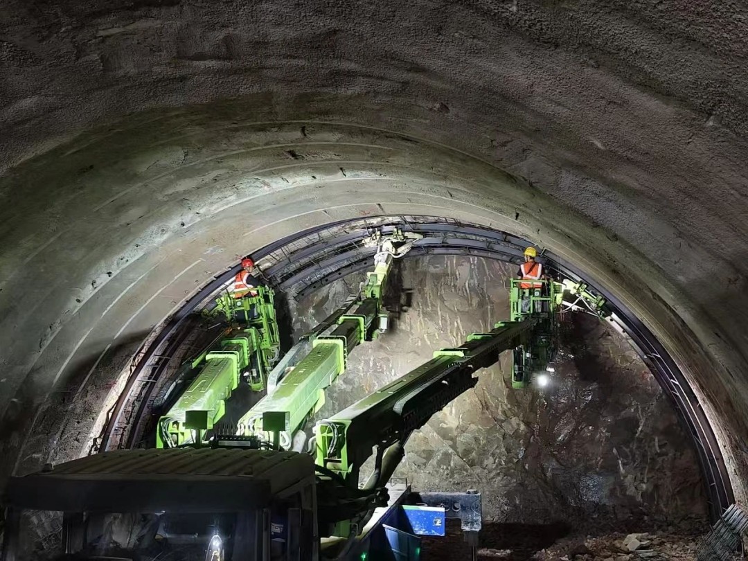 梨坪隧道全长2998米,为微瓦斯隧道。隧道出口位于巴中市通江铁溪镇境内,是连通川陕的关键节点。隧道洞身V级围岩占比较高,洞口段为小净距隧道,施工难度大。项目积极响应“大干六十天 打赢收官战”号召,开展技术攻关,结合地层变化和地表监测情况,及时优化各项掘进参数,保证隧道安全掘进。同时,充分发挥“党建+生产”引领作用,紧紧围绕“党建引领·扛旗争先”专项行动部署,引导党员走在前列,担起安全监督责任。