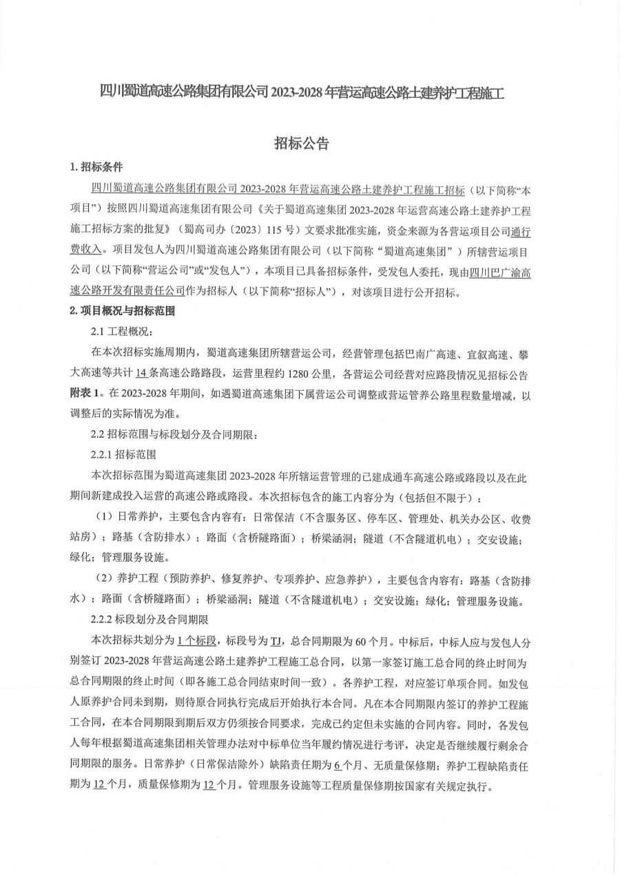 附件1:bw必威西汉姆联官方网站2023-2028年运营高速公路土建养护工程施工招标文件.pdf