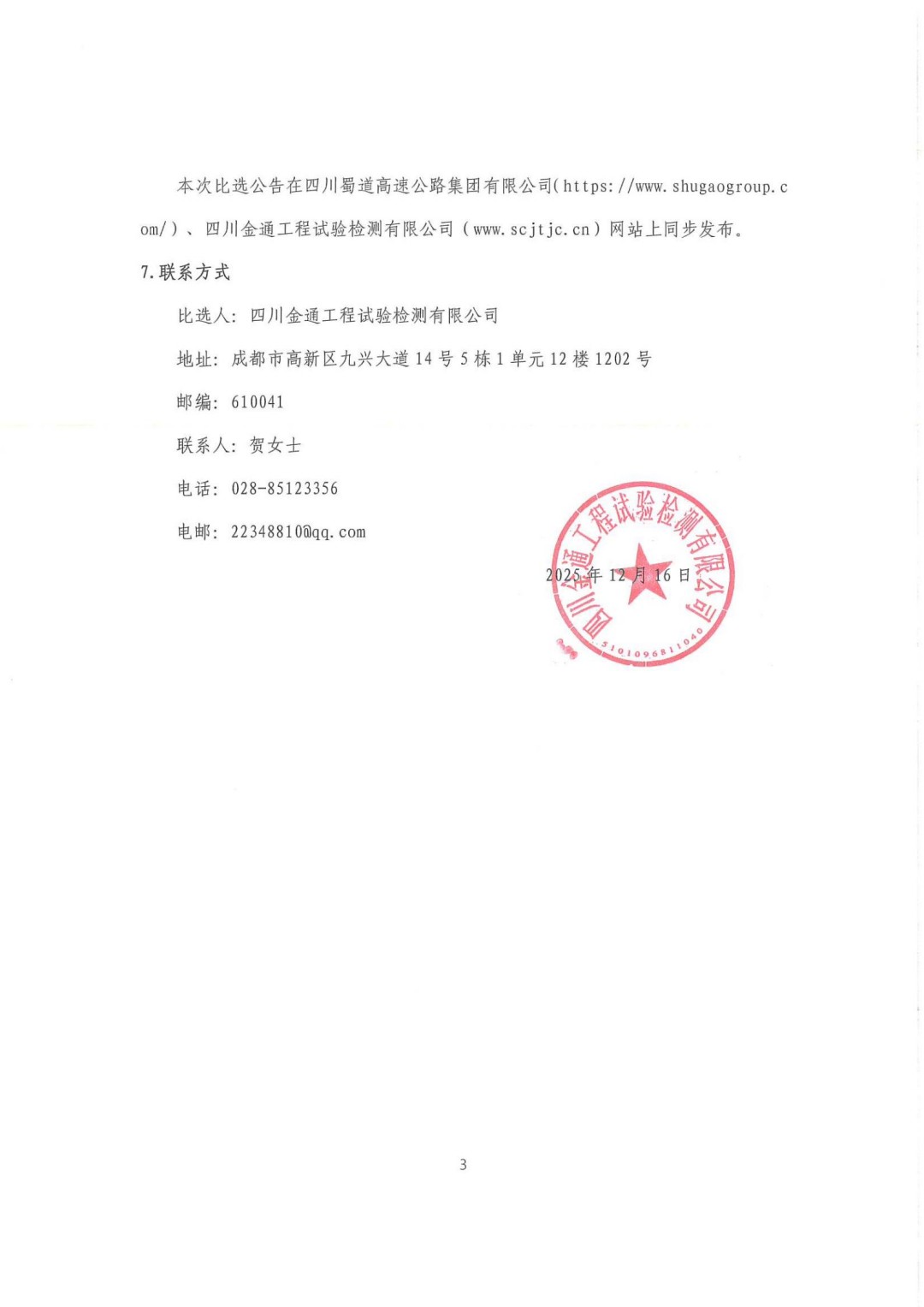 四川金通工程试验检测有限公司2025-2028年常年法律顾问服务项目(第二次)比选公告